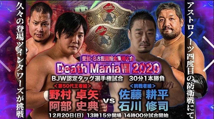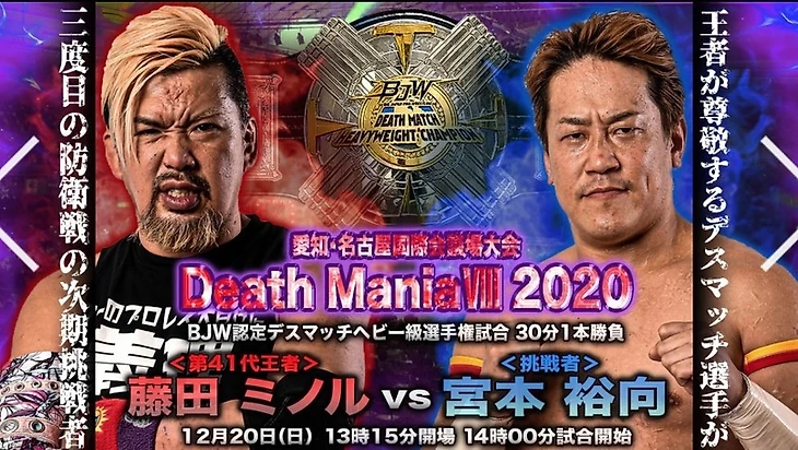 Big Japan Pro-Wrestling (BJW) также приготовился к проводам 2020 года и выдал своё самое последнее шоу из разряда PPV - имя ему Death Mania, которое в своей линейке будет уже 7-ым шоу. И несмотря на кард из 8 матчей, только 3 из них выделялись своей значимостью - ибо они являются титульным и во многом предопределяющими как для чемпионов, так и для претендентов. Плюс название PPV громкоговорящее и выделяет его не меньше по своей роли, чем недавно отгремевшие осенью ивенты. Так что посмотрим как BJW проводили свой 2020 год на Death Mania VII - ПОГНАЛИ!!!