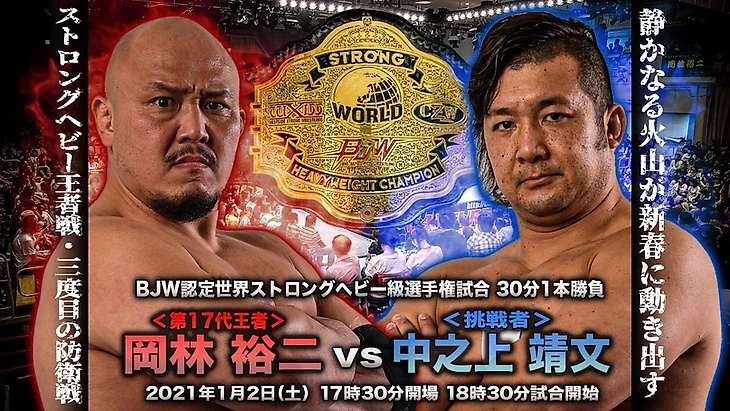 7) Юджи Окабаяши против Хидейоши Камитани - титульный поединок за мировое чемпионство Strong-дивизиона BJW.