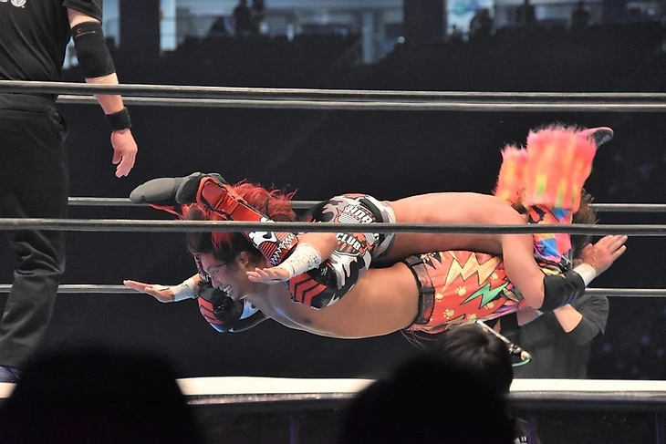 Серия ударов и реверсов, Уилл смог провести суперкик, Окада хотел было ответить дропкиком, но получил реверс в пауэрбомбу до 2. Опять рестлеры покинули пределы ринга, и Оспрей снова хотел было провести пайлдрайвер на незащищенный пол, Казучика попробовал реверсировать это дело в Tombstone, но вместе этого в конечном счете был отправлен с ограждения на комментаторский стол Уиллом, который шарахнул фэлкон эрроу. Это смотрелось очень жестко. Судья открыл отсчет, но британца не устроила бы победа по отсчету, поэтому он затащил бывшего приятеля в ринг, провел еще одно предплечье с канатов, но вновь до 2, как и после убийственной пауэрбомбы. Переместившись на апрон, Оспрей хотел было провести Storm Breaker, но Окада заблокировал это дело и, приняв несколько Кавада киков избежал OsCutter также на апроне, проведя убийственный Tomstone тут же. До конца отсчета Уилл успел вернуться в ринг, прям под короткий Rainmaker. Еще один Rainmaker Оспрей получать не захотел, за что был наказан дропкиком. Спиннинг Tombstone, и Казучика вернулся к Money Clip. С огромным трудом британец дотянулся до канатов, и силы совсем его, казалось, оставили, а Окада требовал продолжения битвы. Нанеся несколько жестких безответных ударов, японец провел скуп слэм, собрался провести элбоу дроп с третьего каната, однако Оспрей вскочил и сумел не только приостановить это восхождение, но и умудрился провести Spanish Fly до 2. Заход на OsCutter «Рэйнмэйкер» перевел в Money Clip, но в этот раз Уилл очень быстро отбился, шарахнув удар предплечьем. Наконец OsCutter залетел, но и его для победы не хватило, и тогда лидер The Empire принялся забивать недруга. Удар предплечьем в затылок, но Окада встретил попытку Hidden Blade коронным дропкиком, и Rainmaker не прошел, так что дропкиком пришлось встречать еще и попытку супер OsCutter прямо в воздухе! Спиннинг Rainmaker прошел, и Уилл вновь быстро выбрался из Money Clip, проведя (вне)очередной удар предплечьем с разворота и Tombstone. Показав нам «Rainmaker pose», Оспрей провел визави каноничный Rainmaker до 2, и кажется тут японские зрители даже издали звуки, хоть этого и нельзя делать, просто эмоции сдержать не смогли. Казучика же ушел от казавшегося вопросом секунд Storm Breaker, провел что-то похожее на Мичиноку Драйвер, и Rainmaker от японца поставил жирную точку в этой битве. Триумф Окады, который лично я тут не ждал…