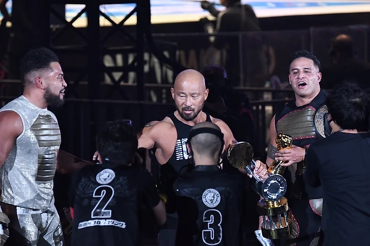 Вообще тут можно долго рассуждать о том, что мы дожили до времен, когда Гото, Сузуки и Ишии дерутся на пре-шоу, причем их выбывают из не самого престижного матча, и обо всем таком. Если же оставить все это за скобками, то по большому счету мы получили достаточно типичный баттл-роял. Я, правда, не понял, зачем были правила о том, что элиминировать можно пинфоллом или сабмишном, когда никого таким образом не элиминировали. Только ДОУКИ выбыл по дисквалификации. Я ожидал прохода Яно в финальную четверку, также ждал БУШИ, многие ставили на Фале, так что тут не очень много сюрпризов. Оуэнс в роли «железного человека» — это достаточно неожиданно.