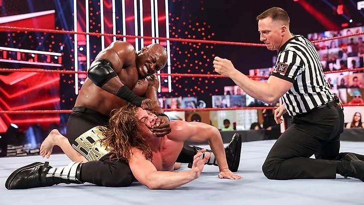 Ожидаемо короткий матч с неожиданным результатом - началось всё весьма резво и даже с перспективой на полноценное действие, учитывая потенциал обеих команд. Но в итоге всё продлилось чуть более 2 с половиной минут и было отдано на откуп развитию чёрной полосы The Hurt Business на протяжении всего выпуска - здесь же получила своё развитие ситуация вокруг конфликта интересов между Шелтоном и Седриком.
