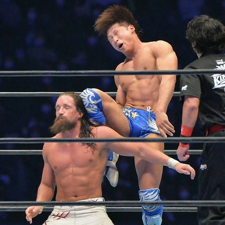 При повторном просмотре мне показалось, что Мастер как-то немного позволил себе брак… Почитав отзывы других, я понял, что не одинок в своем мнении. Не то, чтобы он много прям запорол, скорее я списал бы это на волнение в связи с первым матчем на таком крупном шоу и на такой арене. Тем не менее, более чем крепкий матч, который правда, забывается уже на следующий день. Я бы с большей радостью увидел тут титульную смену, чтобы и Уато свой первый серьезный триумф получил, и Деспи отправился в сольное плавание, но и такой исход, имхо, вполне имеет право на существование. Тем более, что на New Year Dash! выяснилось, что, скорее всего, следующими претендентами станут Ишимори и Фантазмо. И в матче Suzuki-Gun — Bullet Club я вижу больше потенциала.