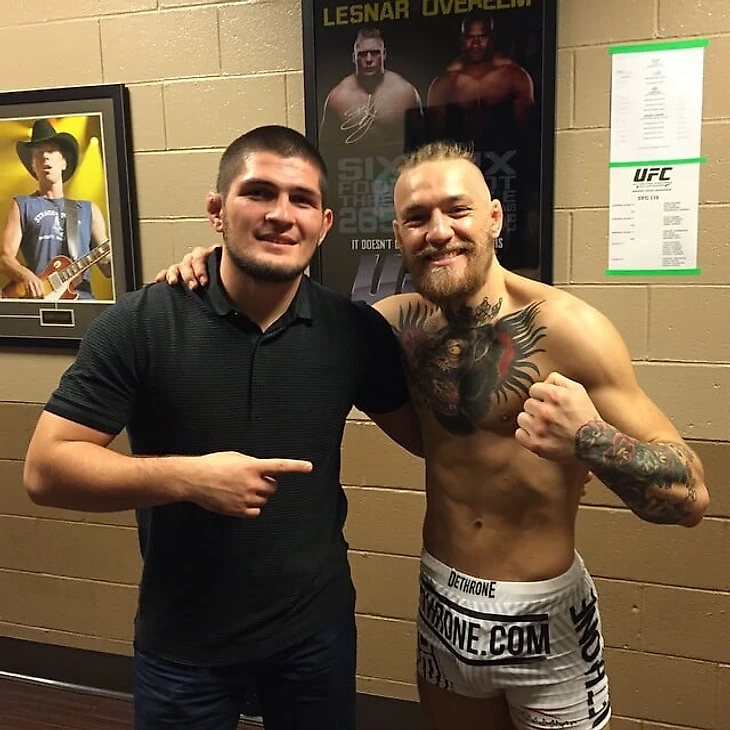 Так появилась добрая фотография Хабиба и Макгрегора, которая 6 лет назад никого не удивляла: бойцы были на контракте с одним производителем одежды, весело чатились в твиттере и даже думали вместе тренироваться.