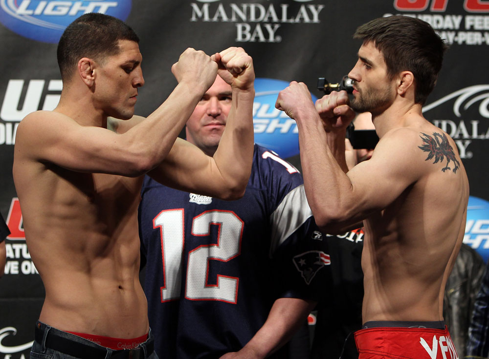 Ник Диаз выходил на бой явным фаворитом, что было заметно даже в активности прессы – обозреватели то и дело затрагивали тему будущего поединка Диаза против Сен-Пьера, игнорируя тот факт, что встреча Ника с Карлосом Кондитом еще не состоялась и результат еще не известен.