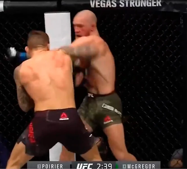 Продолжение боя тоже складывалось для Конора хорошо, пока не сказался накопленный эффект от лоукиков Дастина. Американец пробивал ноги соперника на протяжении всего времени одиночными ударами, и это повлияло на Макгрегора в середине второго раунда.