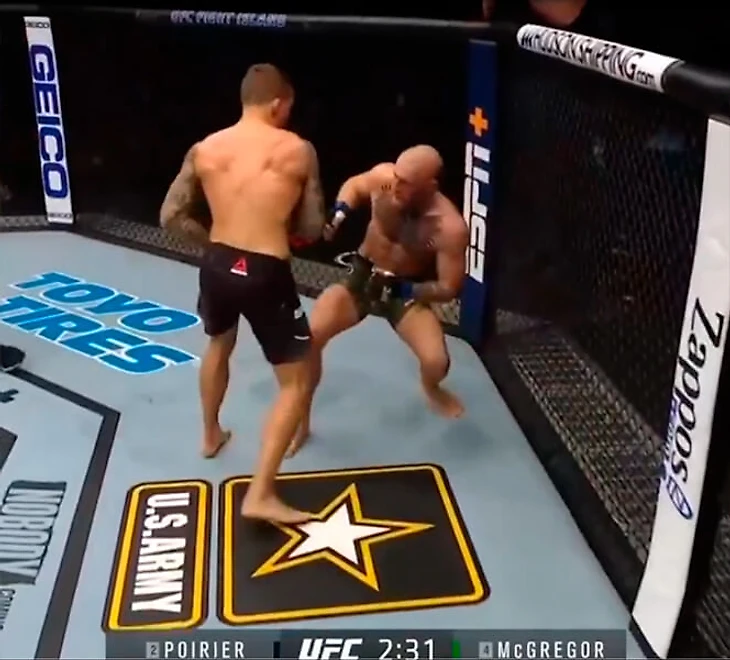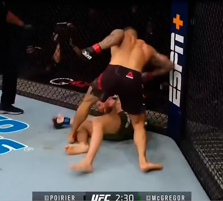 1. Порье включил работу первым номером сразу после того, как Конор лишился мобильности и подвижности из-за отбитой ноги.