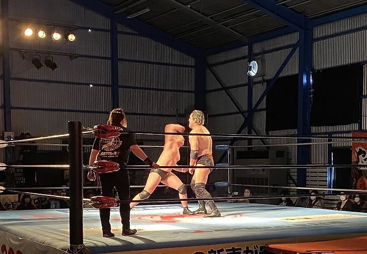 Бой выдался весьма жёстким - для Изанаги таковой матч был шансом проявить себя с лучшей стороны после довольно непростого мини-противостояния с представителями Enfants Terribles. Да и Юма не остался в стороне от события, получив бой против представителя Purple Haze. В основном акцент матча был на том, что Изанаги уверенно контролировал ход матча за счёт обработки руки Аояги - Юме приходилось испытывать сильное напряжение и действовать чуть более осторожно. Командный мировой чемпион AJPW держал удар и парировал захваты оппоненты отдельным страйкерскими контратаками, не игнорируя силовые атаки. Бой шёл с переменным успехом, но несмотря на успех доминирования масочника из Purple Haze, удача ему не улыбнулась до конца.