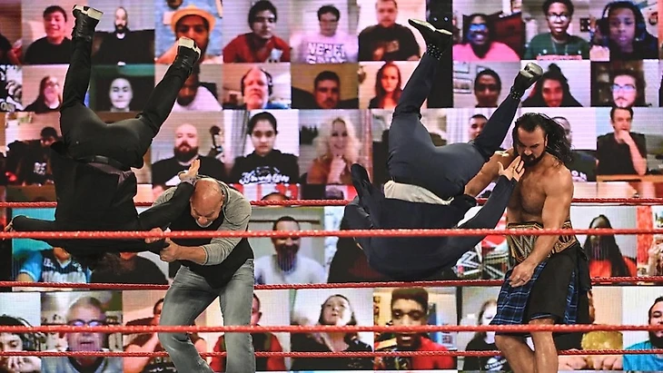 Открывал выпуск чемпион WWE, и начал он с того, как же круто наконец вернуться на экраны. Поблагодарив Вселенную WWE за слова поддержки и пожелания здоровья, он отметил, что перенес COVID достаточно легко, уже на четвертый день начал тренироваться, и сейчас он на 100% готов к выступлениям. Свой матч на Royal Rumble он посвятит всем, кто переболел или болеет этим самым вирусом, пообещав, что вместе мы победим заразу. К разговору об этом матче. МакИнтайр был бы сумасшедшим, если бы несерьезно подходил к Голбергу. Билл — это аномалный человек, который появилась в этом спорте из неоткуда, прошелся по головам всех оппонентов и наконец преуспел, одолев Халка Хогана и став чемпионом мира WCW. Позажигав в WWE, Билл исчез на годы. Но, как известно, последнее, что покидает бойца тяжелого веса — это сила. И Голдберг вернулся. Вернулся таким же зверем, каким и был всегда. И вернувшись, он начал новый стрик — каждый раз, когда Голберг становился претендентом на титул, он отбирал чемпионство у соперника. И в это воскресенье Дрю собирается прервать этот стрик, сохранив пояс.