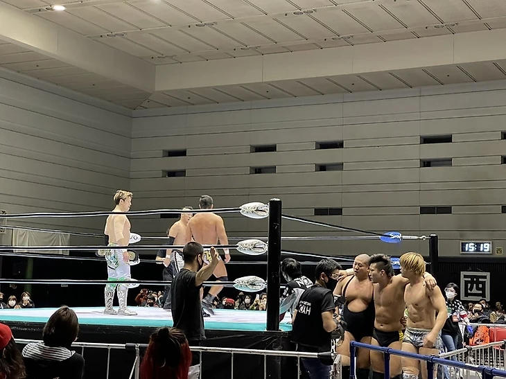 6) Го Шиозаки, Наомичи Маруфуджи, Такаши Сугиура и Кайто Кийомия против Kongo (Кено, Катсухико Накаджима, Маса Китамия и Манабу Сойя) - командный поединок 4 на 4.
