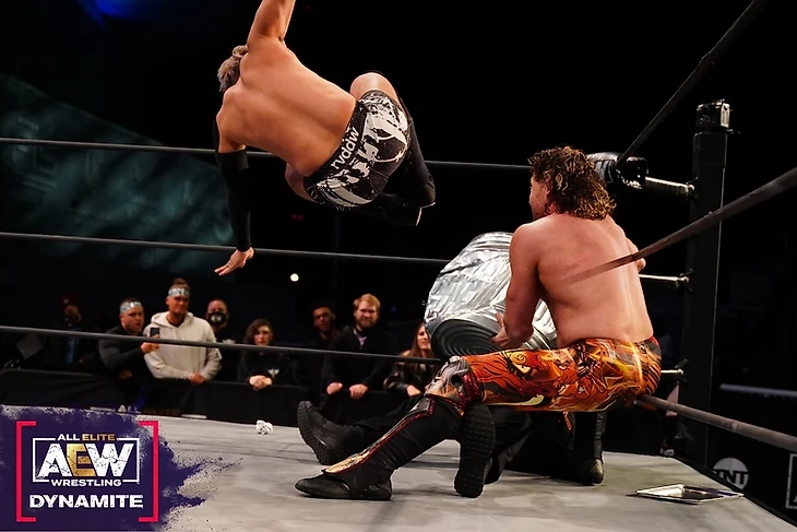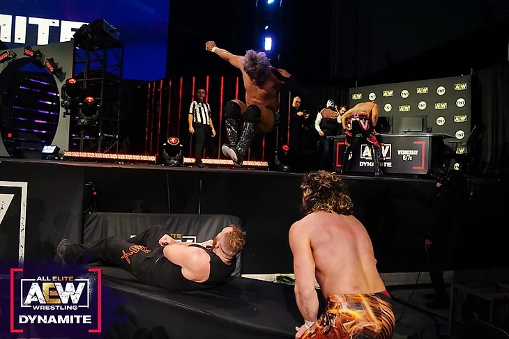 Мнение Николая Кижова: Первой мыслью, которая пришла мне в голову после просмотра мэйн-ивента – невольное сравнение с матчем Драгунов-Данн против Imperium, имевшем место быть на одном из выпусков NXT UK. Есть что-то необъяснимо похожее в их сути: тоже 3 топовые звезды и одна звезда прошлого, тоже два фейса, недолюбливающие друг друга, но вынужденные работать сообща, тоже хилы, вышедшие из одной и той же группировки. И, пожалуй, матч европейцев все же был получше. От мэйна прошедшего выпуска DYNAMITE веет несвежим душком трэша, и дело не в самом факте проведения матча с удержаниями где угодно и даже не в его исполнении, а в отдельных аспектах: овербукинг-фесте в конце (хоть убейте, не пойму, чем «Лучший в мире хил» Омега после этого отличается от хило всего остального мира), отдельных особо нелепых спотов по типу кровати Авалона и «картофельных панчей» и, конечно, КЕНТЕ, к которому мы вернемся чуть позже.