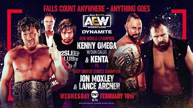 Комментаторы снова возвращаются к событиям прошлой недели и обсуждают финальную драку при участии КЕНТЫ. Не забывайте также, что на сегодня планируется горячий командный мэйн-ивент по правилам Falls Count Anywhere. А пока время для него не настало, вещает один из его участников, Джон Моксли. По словам Несанкционируемого, месяцами КЕНТА доставал его своими вызовами из-за океана и носился со своим кейсом, как придурок. Тем не менее, Джон не верит, что альянс японца и Кенни Омеги просуществует достаточно долго – просто КЕНТА понял, что время разговоров прошло. КЕНТЕ нужно Чемпионство Соединенных Штатов IWGP, за которое они будут драться 26 февраля. Мокс во всех красках расписал их будущую встречу и пообещал пригвоздить голову своего недруга в ринг. Что до сегодняшнего вечера, то Джону предстоит сработаться с парнем, который несколько раз пытался прикончить его, и встать против двух других таких же парней (good luck with that, dudes!). Если одиночную схватку с КЕНТОЙ Моксли называет «войной на истощение», то сегодняшний мэйн-ивент для него – просто веселая прогулка.