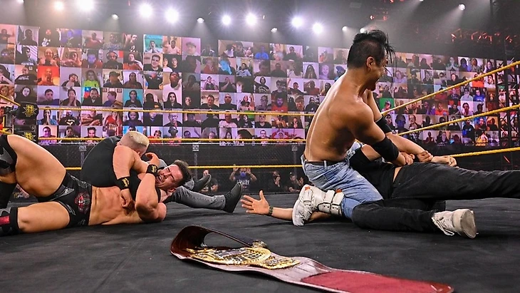 После этого участники «Пути» принялись избивать Кушиду, решили сломать ему руку. Но в этот момент кто-то принялся затаскивать Тиори под ринг. Джонни принялся его вытягивать, но, в итоге, вытащил Декстера Люмиса и убежал от него. Тут уже вылез сам Остин, который, увидев Декстера, испугался и забрался на ринг, но там его в Hoverboard Lock запер японец. Гаргано забежал на ринг и попытался спасти товарища. Кушида теперь переключился на чемпиона, а Тиори был заперт в Silence Декстером.