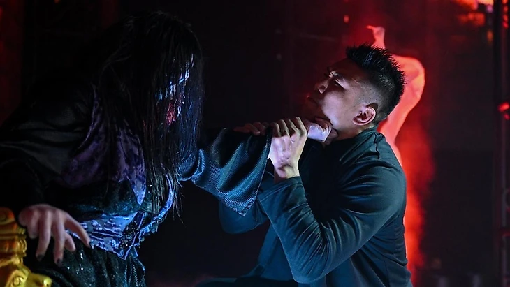 Далее нам показали избитых Уайлда и Мендозу. Появляется Кэррион Кросс, который обещает, что на следующей неделе Сантос Эскобар окажется на их месте.
