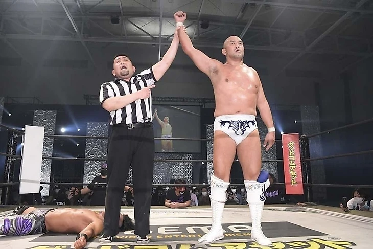 Первый большой поединок новообразованной команды, которая образовалась чисто на рандомной основе 31 декабря в рамках совместного крупного командного ивента, для проверки потенциала сотрудничества DDT и BJW. Плюс это крупный дебют многократного мирового чемпиона BJW Юджи Окабаяши на значимом и полноценном PPV от DDT. Собственно тем подобрали не абы кого из нижней части ростера, а двух весьма серьёзных "биг гаев" - командного чемпиона KO-D DDT Хигучи и более-менее перспективного, хоть и крайне зелёного Юкио Найю. К тому же - у последнего были не особо приятные воспоминания с того самого турнира DDT/BJW Toshikoshi Pro-Wrestling 2020 Shuffle Tag Tournament, так что ему было, скажем так, за что "мстить" Шиме и Юджи. А для Хигучи столкновение с Окабаяши имело именно принципиальный характер - Казу явно понимал кто перед ним предстал и понимал каков его стиль. Так что столкновения двух нереально массивных силовиков вылилось в серьёзное эмоциональное противостояние, так как никому из них так в итоге и не удалось перебороть - потому что у Юджи очень серьёзный опыт в борьбе с броулерами в своём родном BJW. Поэтому Казусаде нужно было тут показать свой возможный максимум, чтобы не попасть под жёсткую хватку от многократного чемпиона Strong-дивизиона BJW.