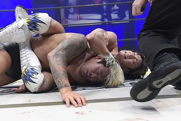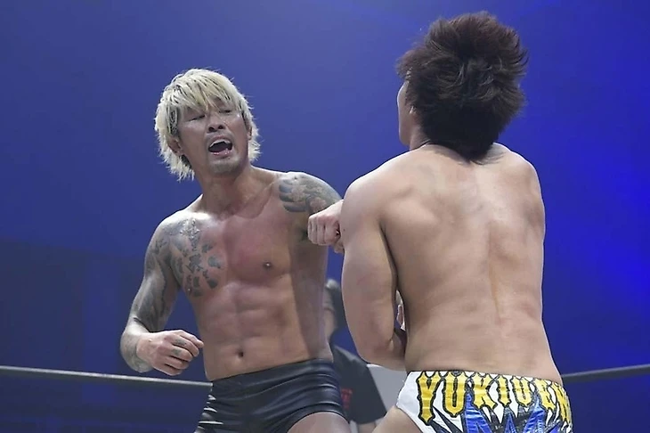 Так вот - Ино вернулся ради новых вызовов, тем более он однозначно был в курсе событий и понимал что сейчас ALL OUT должны снова заявить о себе. И это привело их к DAMNATION, который представили как старые знакомые, так и новички. Ключевые моменты были связаны вокруг Такешта-Хино, Такешта-Сасаки и Хино-Ино - не сказать, что остальные участники прям уж мешали, но их роли были минимальными и играли на динамике самого матча. Впрочем те же Акито и Катсумата в матче показали себя с иной стороны - более бодро, вдохновлённо и без выкрутасов (у Акито это были закидоны с его сабмишен-стайлом, плюс он толком не отошёл от противостояния с Дино и пытался забыть об этом выступлениями с Wakate Tsushin в звании командных трио-чемпионов KO-D, ну а Шунма просто перестал быть круглым идиотом при своём месте создателя Sauna Club).