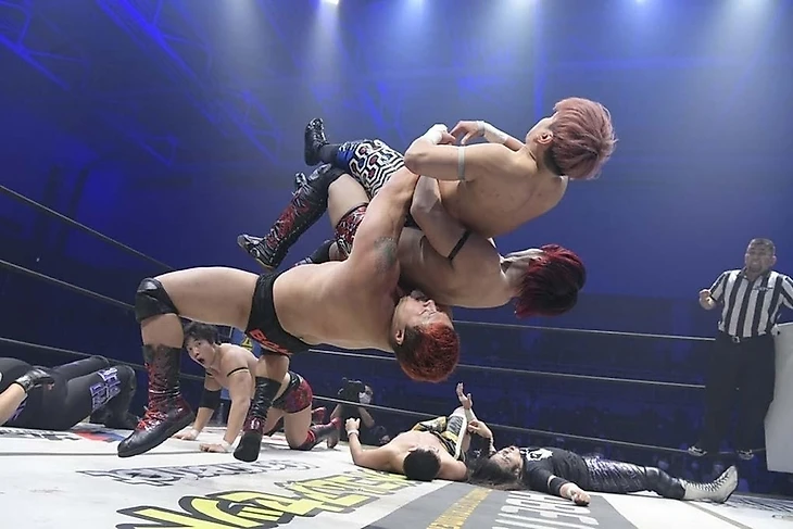 6) DAMNATION (Дайске Сасаки, Мэд Поли, Юджи Хино и Сома Такао) против ALL OUT (Юки Ино, Коноске Такешты, Акито и Шунма Катсумата) - командный поединок 4 на 4.