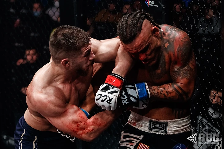 Первый раунд получился ярким. Соперники не стеснялись идти в размен ударами, что, конечно, нравилось зрителям. В одном из таких обменов Цыденов неожиданно потряс Игнатьева мощным ударом, а затем перевел Евгения в партер, где пытался контролировать ситуацию.