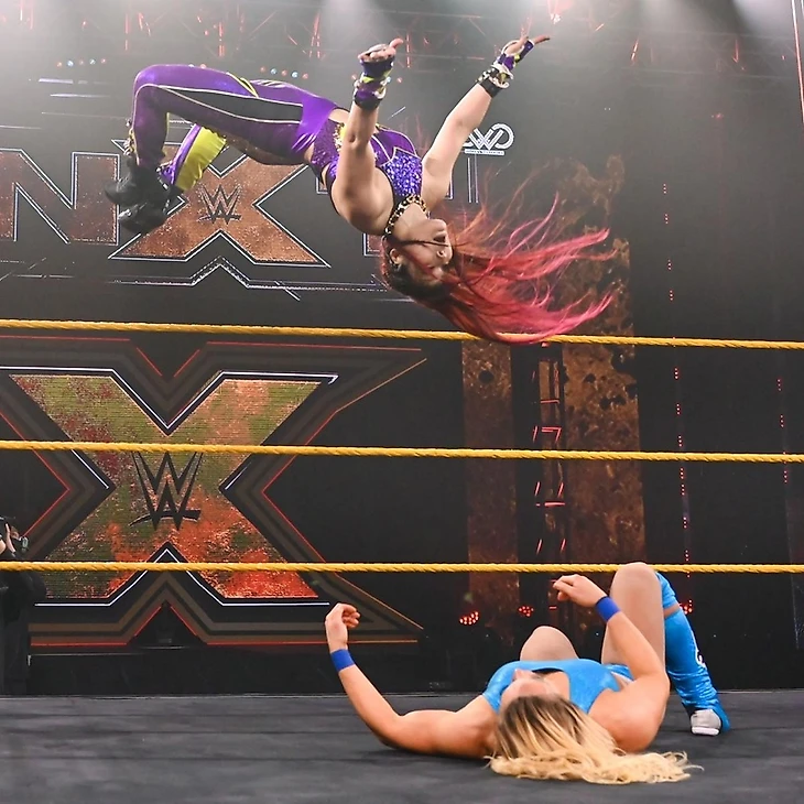 Также нам напомнили, что на следующей неделе пройдёт матч за женские командные титулы WWE, а через 2 недели был назначен матч за женское чемпионство NXT. Ио Шираи встретится с Тони Шторм.