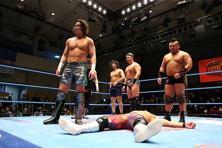 — Сувама, Шотаро Ашино, Коджи Ивамото, Хикару Сато и Дэн Тамура против Джейка Ли, Хокуто Омори, Коджи Дой, Юске Кодама и ТАДЖИРИ (матч за 6 марта);