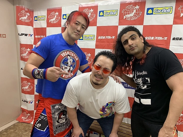 — Следующим матчем стал командник между Йошитатсу (с новыми помощниками по имени Балия Акки и Осаму Нишимура) против Рёджи Хиджикаты и Такао Омори с Блэком Менсо-рэ. Здесь Йошитатсу удалось одолеть эту связку оппонентов и даже удержать одного из телевизионных командных трио-чемпионов. После этого у него завязался разговор неким чуваком в малиновом пиджаке и виде братка-авторитета из России 90-х гг. Причём этот чувак и говорил с такой же смешной манерой, будто пытался говорить о чём-то величественном. Впрочем Татсу остудил его пыл пощёчиной и он с ним и Акки покинули ринг (Видимо Йошитатсу готовиться отжать телевизионные трио-чемпионства AJPW, чтобы вернуться в титульную когорту и быть на виду. Плюс чтобы и запомниться своим новым типажом, как и философией).