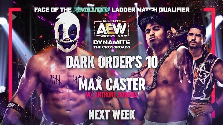 Макс Кастер победил Десятого из Dark Order после того как прятавшийся под рингом Джека Эванса вырубил сектанта бумбоксом. (8:50)