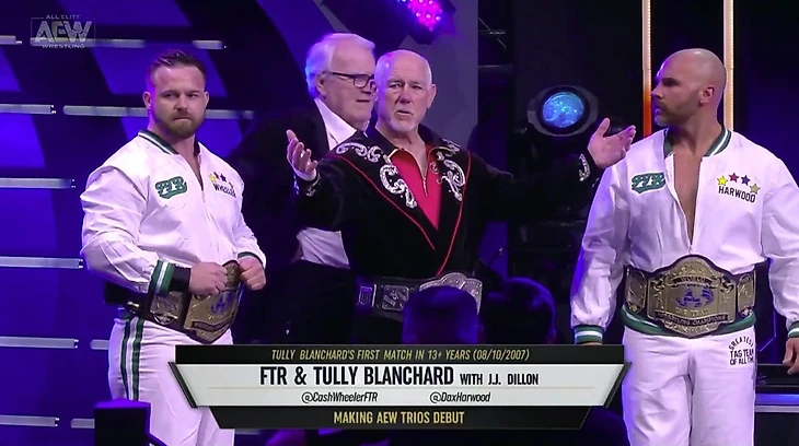FTR и Тулли Блэнчард(с ДжейДжей Диллоном) победили Jurassic Express после того как оператор в капюшоне ударил Лучазвра камерой, что позволило Тулли совместно с FTR провести тому Spiked Piledriver и удержать до трех. (11:10)