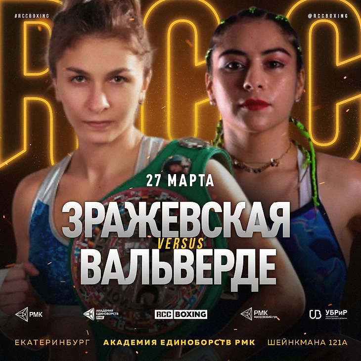 Российский боксер Татьяна Зражевская (10-0) и Эстрелла Вальверде (18-6-2) из Мексики проведут титульный бой в Екатеринбурге на турнире RCC Boxing Promotions. На кону будет стоять временный титул чемпионки WBC в легчайшем весе (до 53,5 кг).