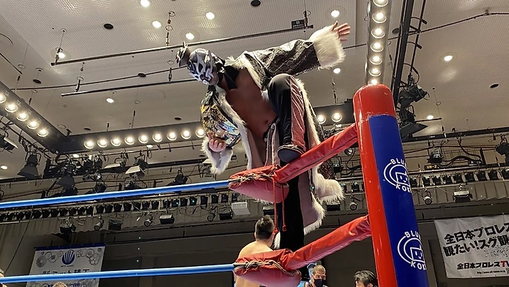 — Предпоследним аккордом стало ещё одно, последнее столкновение между Сувамой и Йошитатсу в командном матче 2 на 2 (c Хикару Сато и Осами Нишимурой соответственно). Причём претендент на Тройную Корону решил в конец разозлить чемпиона, выйдя в таком же виде, как Сувама во время всех своих матчей, чтобы своими пародиями на его фишки довести его до белого каления. Это дело удавалось с переменным успехом, да и стычек между оппонентами по матчу за главное чемпионство в этом поединке не было много в конечном итоге - Йошитатсу удержал Сато после Backdrop Saito Suplex после чуть более 14-минутного боя. И разумеется Йоши не мог не уделить время самому себе любимому, чтобы подчеркнуть, что очень скоро он совершит невозможное на глазах у зрителей.