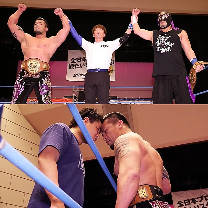 6) NEXTREAM (Кенто Мияхара и Юма Аояги) против Purple Haze (Зевс и Шигехиро Ириэ) - титульный поединок за командные мировые чемпионства AJPW.