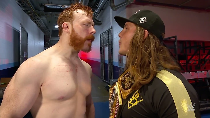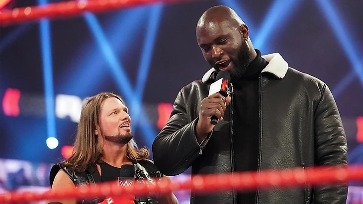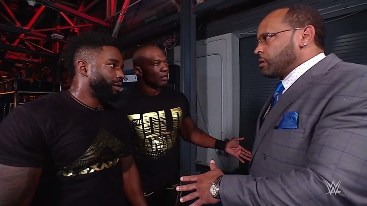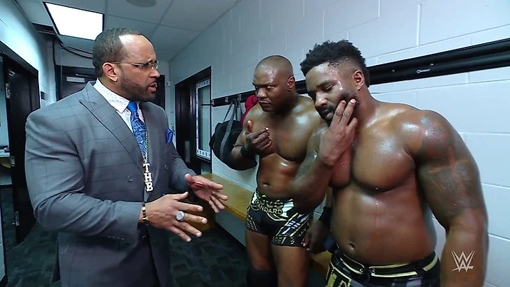Уже на ринге "Феноменального" понесло на рассуждения о том, что он с Омосом совершат свой дебют как полноценная команда, особенно Омос как рестлер. И будет это не где-либо, а на главном шоу года и в титульном матче против Нового Дня, признанной топ-команды и многократных командных чемпионов. Причём нынешние чемпионы достойны уважения хотя бы за свою победу неделю назад, но на WrestleMania ЭйДжей и Омос не уйдут в качестве проигравших. На этой ноте их и прервали Кингстон с Вудсом - те устроили референс в сторону их оппонентов, особо вокруг разницы в росте между Стайлзом и Омосом. Дошло до серии вопросов от чемпионов к претендентом, чтобы проверить их "командное единство" - Стайлз запорол все ответы, да и Омос усиливал это дело, вызвав в конце у того бомбёжку. Тем не менее, ЭйДжей уверен в том, что эти вопросы от чемпионов были грязными трюками, чтобы посеять между ним и Омосом семя раздора. Но этому не бывать, а на главном шоу года претенденты заставят чемпионов признать свою неправоту.