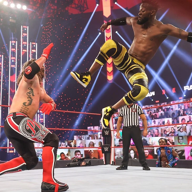 Победитель: Кофи Кингстон (ЭйДжей был готов к своему Phenomenal For-Arm, но Вудс своей игрой на тромбоне отвлёк внимание Стайлза и Омос принялся преследовать Ксавье - на что последний и рассчитывал, ибо Кингстон перевёл финишер Стайлза в свой S.O.S. и удержал его).