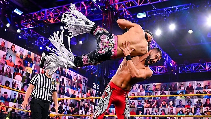 Личное мнение автора обзора: "поединок аутсайдеров" - иначе это дело не назвать. И отчего в этом матче команды сражались между собой до последнего, поскольку все четверо, как я уже говорил много раз - последние представители самого первого поколения дивизиона полутяжей. И я лично ожидал увидеть их матч именно в мэйн-ивенте этого выпуска. Но видеть их в оупенере - это знак того, что отныне им более нет места в главных событиях даже этого бренда. Философски можно бубнить о том, что оригиналы 205 Live потеряли свой дом. А если серьёзно без подобных грустных шуток - в победу Сингхов на фоне последних поражений в рамках импровизированного объединения в BollyRise никак не верилось, хотя и Низ с Дайвари не внушали большого доверия. Этот матч нёс в себе искру реального исключения в интриге - кто в итоге проиграет по всем фронтам, даже бывшим собратьям по поколению. В итоге -Тони и Ария получили свой шанс попытаться продолжать сражаться дальше с новичками NXT, а Сингхи возможно окончательно будут списаны в новый бренд, создающейся в Индии, их второй родине. А что до послания от Дайвари с Низом после матча и шоу в целом - звучит слишком громогласно и амбициозно, да и ситуация в основном ростере по части командных дивизионов не самая радужная. А уж с бывшим полутяжам там работают... как с джобберами, Низ так и вовсе в прошлом году на синем бренде получал на орехи в сквошах, не говоря про аналогии в NXT. Особой надежды на такие заявления от оригиналов фиолетового бренда я не питаю.