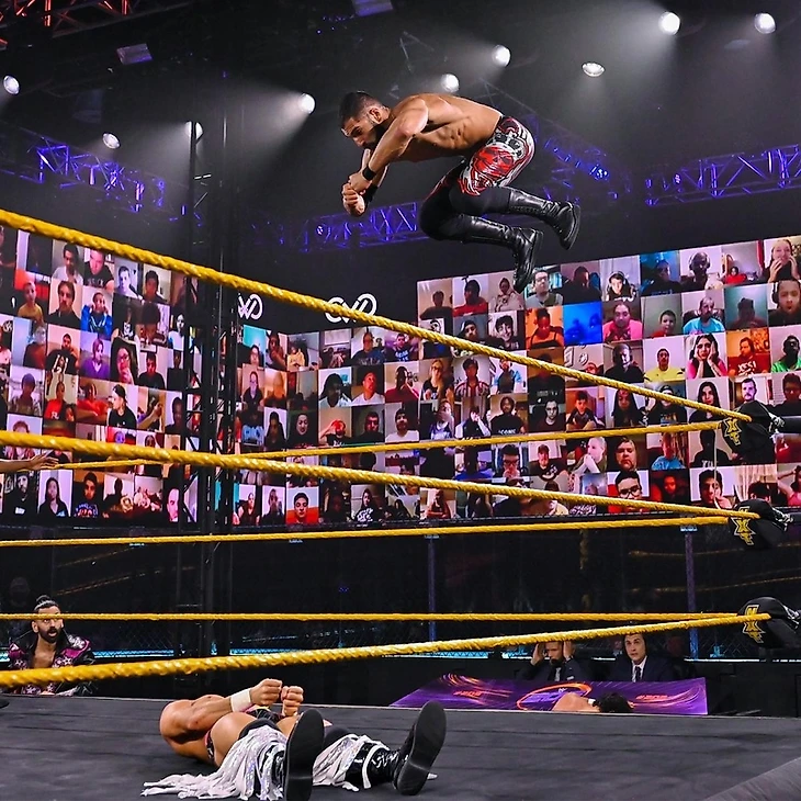 Победитель: Мансур (аравиец едва не проиграл в матче после Diving Killswitch, но успел выпасть с ринга после финишера. Грей же понимал что Мансур мог проиграть не совсем чисто по отсчёту и решил попробовать добить его на ринге - и тут он попался под сворачивание от аравийца).