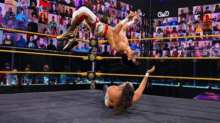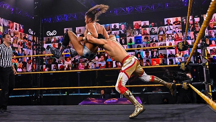 Личное мнение автора обзора: конечно данный поединок мог быть вполне себе средним, но достойным оупенером. А по итогу выдался добротный по технике поединок, да и в плане мотивации тут было всё просто, но гениально - ибо Август решил повысить себе планку в плане его последних успехов и замахнуться на невзятую ранее ни кем высоту в лице стрика аравийского гостя. Однако Мансур сам по себе уже опытный боец и так просто одолеть его было невозможно изначально - и обоим было тут за что биться: Мансуру чтобы сохранять статус непобедимого в прямом смысле полутяжа, а Грею - чтобы совершить исторический момент и тем самым претендовать на нечто большее в будущем. Поэтому матч продлился довольно долго (более 10 с половиной минут - редкий хронометраж для нынешнего формата выпусков), хотя я лично это не очень замечал. Потому что бойцы провели техничный и разносторонний поединок, не лишённый эмоциональной составляющей в контексте отчаянных попыток бойцов сохранить прежний статус/получить прорыв за счёт большой виктории. И как уже показал результат - ситуация вокруг стрика Мансура принял уже угрожающий оборот, ибо кто только не пытался его сразить, но всё выходило иначе и в пользу аравийца. Плюс такой тип победы я уже видел неделю назад... на NJPW STRONG в одном из последних матчей 1-го раунда турнира New Japan Cup USA. И это произошло с некогда бывшим участником бренда 205 Live, которому повезло быть 4,5 года назад чемпионом бренда.