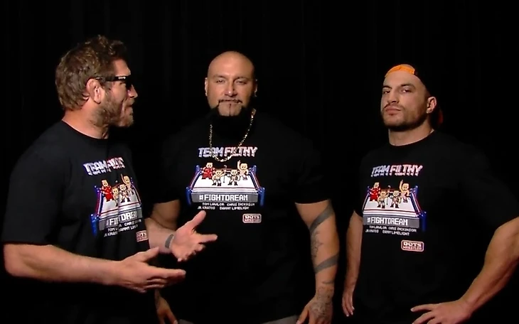 3) Team Filthy (Том Лоулор, Джей-Ар Кратос и Крис Дикинсон) против Броди Кинга и The Reagel Twins (Логана и Стерлинга) - специальный командный поединок 3 на 3.