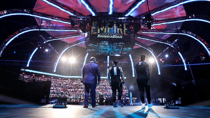Перед началом выпуска нам показали хайлайты главных моментов мэйн-ивента 2-го дня WrestleMania 37 - Роман Рейнс защищал своё чемпионство Вселенной WWE от победителя мужской Королевской битвы 2021 Эджа и вечного догоняющего андердога Дэниела Брайана. После чуть менее 22-минутного поединка со всеми вытекающими последствиями формата Triple Threat Match и весьма годного экшена - Роман Рейнс отстоял свой титул, при этом демонстративно на глазах у многотысячной публики удержав одновременно Эджа и Брайана.