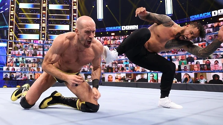 Но не тут-то вышло: после последней фразы о том, что после выполненных ранее обязательствах Роману нужен самолёт и большой денежный чек, навстречу к чемпиону вышел Сезаро к деловом костюме и с довольной ухмылкой. Швейцарец, почивая на лаврах своей большой победы на 1-ом дне WrestleMania 37 в матче против Сета Роллинса, готовился к разговору с Главой Стола. Только вот сам чемпион решил, что не обязан выслушивать вчерашнего полумидкардера - Роман без напряга сошёл с ринга и с хитроумной мимикой презрения ушёл с глаз обозлённого швейцарца. Позднее после рекламы Сезаро встретился с Адамом Пирсом и Соней Девилль - швейцарец ясно дал понять, что ему не нужен на данный момент титул Романа. Ему нужно проучить Романа за то, как он повёл себя перед ним и в принципе проигнорировал возможность краткого диалога. Сезаро хотел очной встречи с Рейнсом, причём в матче и уже сегодня. Соня ответила на это тем, что они обсудят эту идею и дадут ответ позднее.