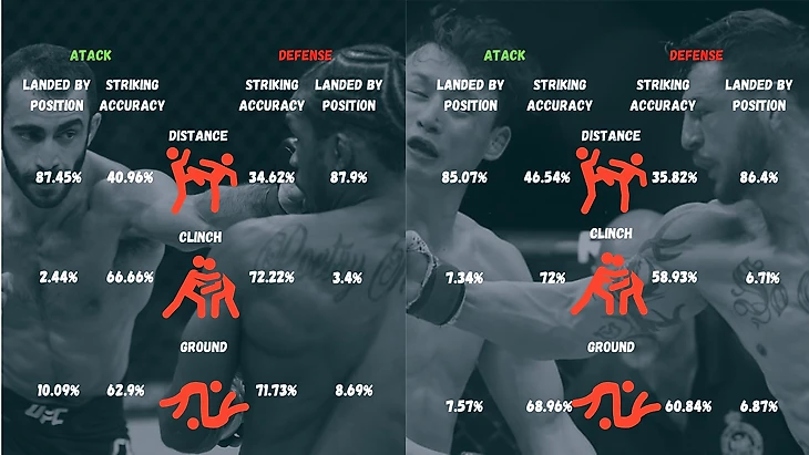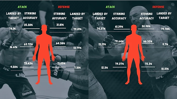 Как, куда и с какой точностью бьют сами бойцы и их соперники.