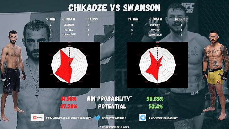 Со-главный бой UFC Fight Night. Гига Чикадзе vs Каб Свонсон. Статистический анализ + вероятность победы