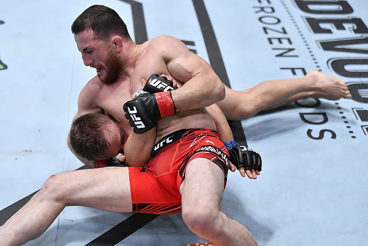 Merab Dvalishvili def. Cody Stamann via unanimous decision (30-27, 29-28, 29-28) Двалишвили ожидаемо передышал и заборцевал, тут даже сказать нечего.