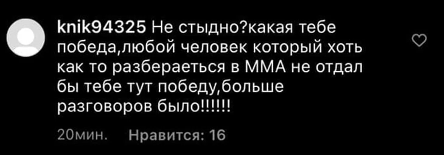 • «Не стыдно? Какая тебе победа, любой человек, который хоть как-то разбирается в ММА, не отдал бы тебе тут победу».