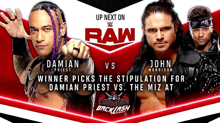 До этого матча были показаны хайлайты прошлой встречи между Дэмиеном и Джоном - на этой почве WWE официально объявили о матче между Мизом и Пристом на WrestleMania Backlash.