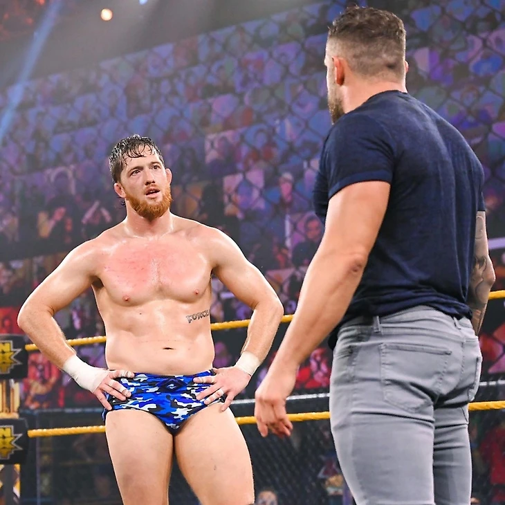 За кулисами с арены прогоняют Джонни Гаргано и Остина Тиори. Причину раскрыли далее, когда оператор показывает раздевалку, где мы видим избитого ими Бронсона Рида.