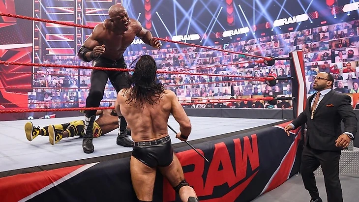 Речь Монтела была прервана выходом Дрю Макинтайра, который подумал о том, что MVP и Лэшли решили провести титульный матч, покрасовавшись силой Бобби. Макинтайр моментально принял этот вызов, рассчитывая в одиночку вернуть себе титул. Но Монтел тут же перебил Дрю и дополнил недосказанное: вызов будет на матч с чемпионом WWE, но не за его титул. И будет проведён для любого рестлера бренда, кроме Макинтайра и Строумена. Подобные слова сработали триггером для Дрю и тот пошёл в атаку на Монтела, но его прикрыл Лэшли и получил свою парочку ударов от Дрю. Под крики от девушек на ринге, Бобби был ретирован с ринга MVP, который не хотел этой драки ради здоровья своего клиента и едва сдержал его вне ринга у рампы.