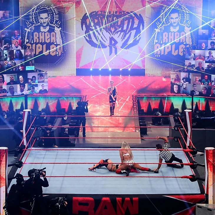 Позже женская чемпионка RAW сдержала своё обещание - она проследила за матчем Флэр и Аски в качестве наблюдателя рядом с комментаторами бренда.