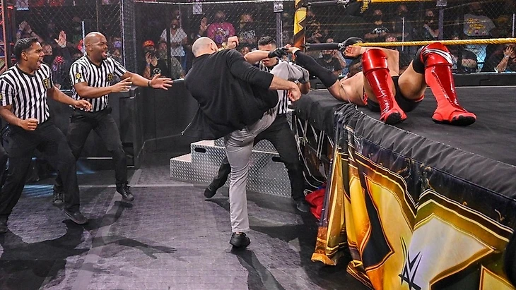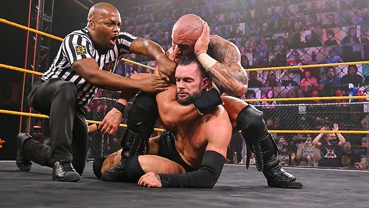 Кэррион Кросс (со Скарелтт) (ч) победил Финна Балора по остановке матча, защитив Главное Чемпионство NXT (22:25)