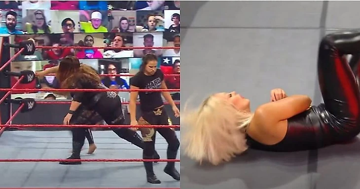 Переходим к еще одному случаю через чур сильного швыряние сквозь канаты. На этот раз пострадала Менди Роуз, которая неудачно вывихнула локтевой сустав. Тут травма однозначная, да и Вину Найи сложно отрицать.