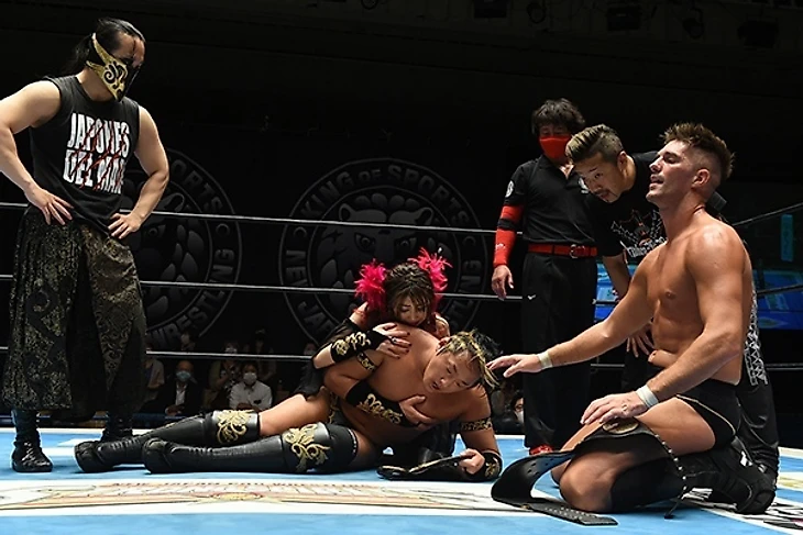 CHAOS (ЙОШИ-ХАШИ, Томохиро Ишии и Хирооки Гото) против Los Ingobernables de Japon (Тетсуя Найто, САНАДА и БУШИ) - титульный поединок за командные трио-чемпионства NEVER в открытом весе.