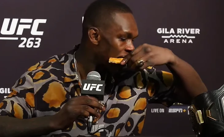 Исраэль Адесанья устраивает шоу во время поединков не только своей ударной техникой.