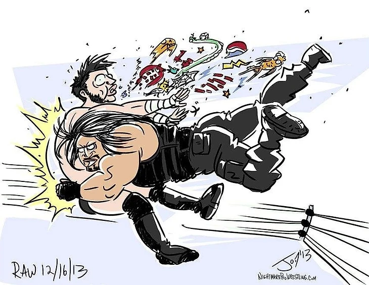 За все время, пока Роман проводит гарпун, был всего один случай, когда он чуть не привел к травме. Было это в матче со Стайлзом, когда ЭйДжей собирался проводить феноменальный локоть, а Роман поймал того в воздухе: